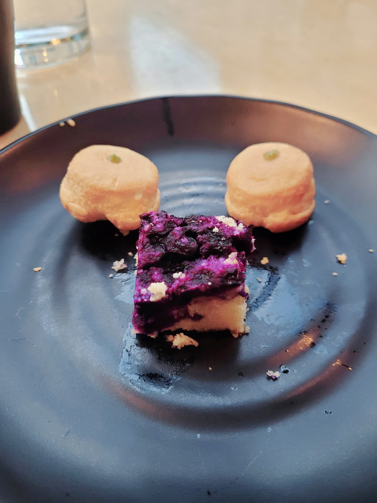 Moving on to the final course, the dessert, there was this cream puff and blueberry cake was pretty decent considering its pre-packaged dessert. However we found that the matcha ice cream was very spicy(?).