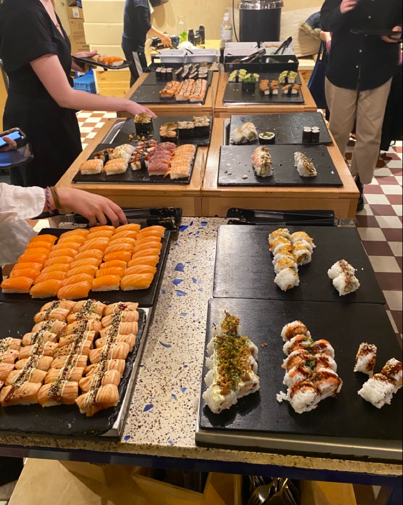 Overall this restaurant had great value for money in Helsinki at only 16.9 euros per person for dinner. The restaurant is situated in a nice street in helenski pretty close public transport. The restaurant itself has a intimate yet confortable environment, which we felt was pretty fitting for the food, however the walkways can get a bit congested if it gets relatively packed. When we went in we were instantly greeted by the staff whom probably wasn't Japanese(?) and was asked to pay for the buffet, however afterwards we were pretty lost in trying to find a suitable seat. All the food was self serve with sushi on the table and the drinks and dessert across the counter.