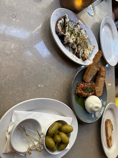 Unfortunately the service was not great. Our server was very nice and professional, thank you for him. But many other were clearly pushing people to buy or leave and the athmosphire was tense, stressed and all about the sales. There was tense talking between the servers, especially the man who greeted us at the door and then was seen to be working all over the restaurant. As an example from where I was seated I could clearly hear two workers talk about the table next to us and what to do since they had been sitting there now awhile without ordering anything more than the main dishes they already ate. Eventually two servers went to ask them clearly trying to sell them or push them out. I also heard one server complaining of another table only ordering drinks. Also I was suprised that we were sold these extra things to our main dishes without telling us that they cost and how much they cost. I think this should always be disclosed.