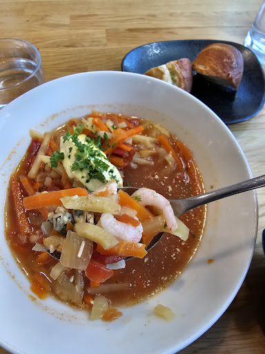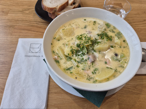 Read moreCosy and quick – a real market gem! SOUP+MORE at Hakaniemi Market Hall is absolutely delightful. Nestled in the beautifully renovated covered market, it offers a warm, inviting atmosphere – perfect for sheltering from the elements. I had the XL salmon soup for €16, which felt generous and very much worth the price of a lunch special. It was rich, fresh, and downright delicious. The service was fast, efficient and friendly, with staff ready to help when asked. A highly recommended spot for anyone seeking hearty comfort food...
