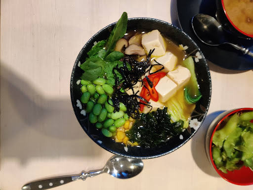 The best part of this sushi place that it has very decent options for vegetarians and also serves warm food. We ordered misu soup, edamame, vege sushi (8 pieces) and vege curry ramen altogether for 2 people. Everything that was served was fresh and tasty. The portions were filling.