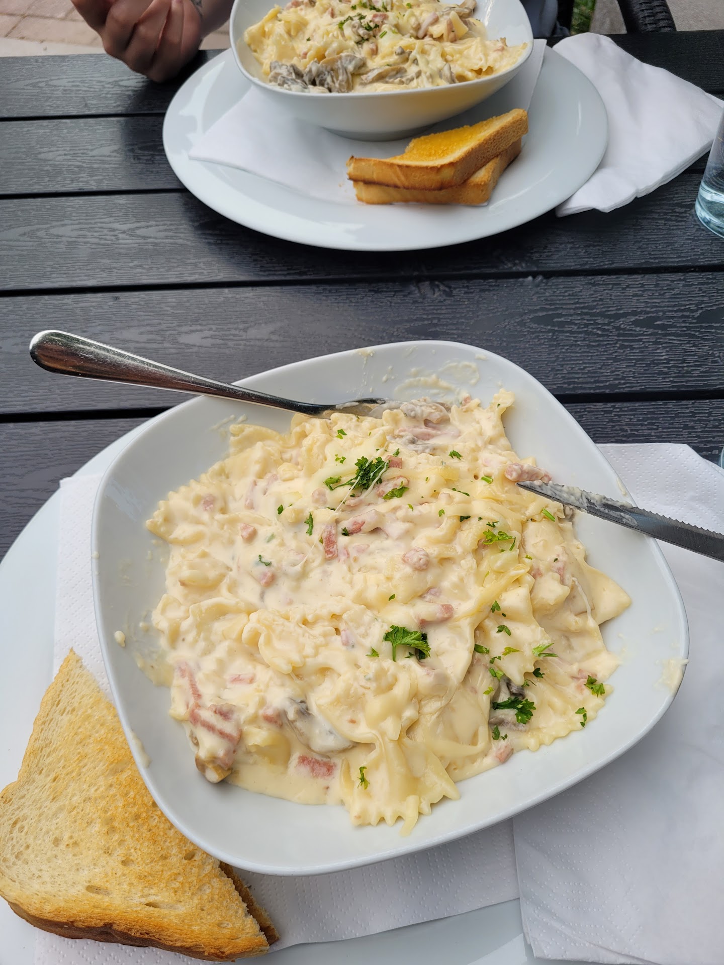 Food is a bit salty but fine. Service made two mistakes: one from reclamation handling and one from getting upset at my remark regarding missing starters. Later they apologized and brought the starters. Glass was dirty and drink had something looking like tobacco on top. Inside the glass was a green thing lining the wall and some brown things. I bought a new drink myself, giving service an opportunity to remedy it but they were simply happy for receiving more money instead. Rare opportunity for a service acid test and they failed. Terrace is full of locals and the heavy tobacco smoke is perhaps not the best environment for dining. I wonder why service recommends it.
