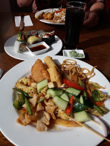 Delicious lunch buffet! Includes a wide variety of sushi, Chinese styled chicken, pork and beef foods, salads and dessert. Resonable price also includes drinks (coffee, tea, soda etc.). Also takeaway option. Highly recommended!