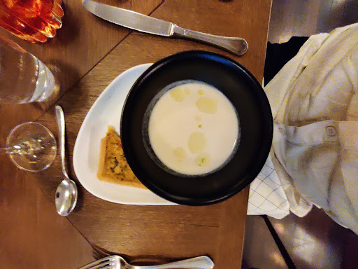 A fantastic restaurant with pleasant staff. The fixed menu was adapted for my vegetarian needs, and there was a three course meal. Choice of wine was 2016 or 2014 reisling wine. Why they have the two years, I don't know. It wasn't very well explained and there was no description of how the wine would go with the food. This aspect could be improved considering they have a wine bar connected to the restaurant. Instead I went for a cocktail with smoked gin. Interesting combination, and smokiness was pronounced for quite an aftertaste. Stater was a artichoke soup. Nice creamy taste and served in a nice bowl with some pastry to accompany it. Meat eaters had a delicate mini sausage (or so I'm told) roll to eat with the soup. Portion size was as expected for fine dining. Main course was, artichoke again, with a sliced salad fried with a vinegar dressing with some mushrooms and creamy potatoes. The blend of flavours were good, and mixed, although combined taste was never present twice from the food. Dessert was a white chocolate pudding with ice cream, with cranberries and crumbled cardamom cookies. This was soft and sweet to go with the green tea. The music was lively and the place was well light. For a Monday night, there was a good atmosphere and waiting was of good quality. They communicated well in Finnish and English. There is only a single toilet for the men, in a restaurant with seats for around 50 ppl, and that is at the back of the restaurant that looks a bit messy. Room for improvement for the entire experience, but generally...