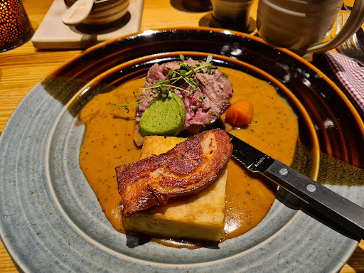 Read moreIt's been a 10 hours trip before visiting this place. So I was quite hungry till the moment. The place is located in a city center and close to the harbor, so it looked like a good choice despite high price in reviews. The interior looks cohesive to the place name and style and welcome was quite warm. Place was not crowded and we got a table within a minutes. Unfortunately, the experience was not that pleasant comparing to the price. The service. The gas candle on the table went dark and start to unpleasantly smell kerosene. There was neither napkins nor toothpicks. The food. I ordered a chicken with beetroot in chefs style for the price about 50 euros. The portion was small. Beetroot wasn't found in it. There was so much sugar in the sauce that it was not impossible to eat. Atmosphere. This was okay. Dark, swords on the walls, aincient helmets, viking's boat, shields and authentic music. To conclude - place is not bad, but the food does not cost it's price and not tasty and...