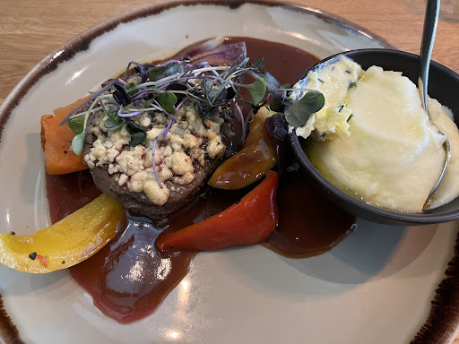 Read moreFirst impressions were nice, the lighting was slightly dimmed, in that cozy cottage way. We got our table immediately, and I had a steak and fries. The presentation on the plate had a certain whimsy to it, in a fun way. The fries were wonderful, fluffy on the inside, and a nice crisp on the outside, and the steak was cooked perfectly. The steak was juicy and deliciously flavorful, only further improved by the compound butter.
