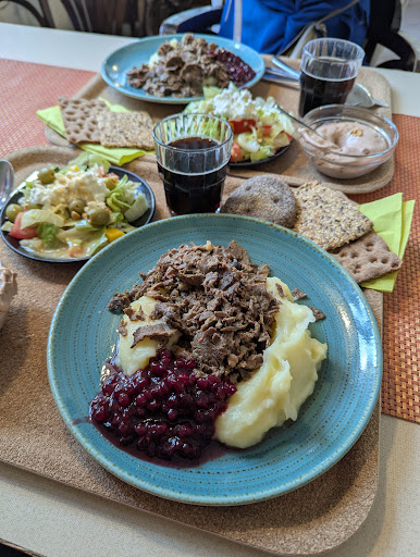 Hanna Maria was a delicious stop for lunch in the beautiful and quaint town of Porvoo! They serve large portions of Finnish comfort food - my boys ate Reindeer and onions over mashed potatoes with lingonberry jam, my husband ate the Swiss Steak with Mashed potatoes (the Swiss Steak was like a chicken Cordon Bleu with cheese and ham in the middle - he loved it). I had the fried salmon with dill sauce - it was juicy a very tasty. All the dishes came with either French fries or mashed potatoes, side vegetables, salad, and a drink. They offer coffee and home made desserts as well. The prices were also very affordable - other restaurants in Porvoo were much more expensive. I highly recommend Hanna Maria if you would like to try local Finnish...