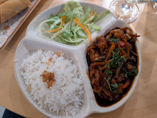 The chili chicken was very spicy. It was served with a small fresh salad and jasmine rice rather than traditional white rice.