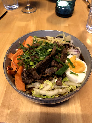 Really let down by the ramen. I had been craving a nice, authentic Japanese ramen after trekking around in the cold and popped in here right after it opened. All the employees were extremely welcoming and service was flawless. The ramen, however, had nearly no redeeming qualities. The noodles were pretty stiff and the meat (I sprung for reindeer for the sake of it) was overcooked, tough, and flavorless. I was willing to chalk that up to reindeer not being the best meat to use but my friend had the pork ramen and was complaining about hers as well. She didn’t bother to even try to finish hers, claiming it was the worst ramen she had had in her life.