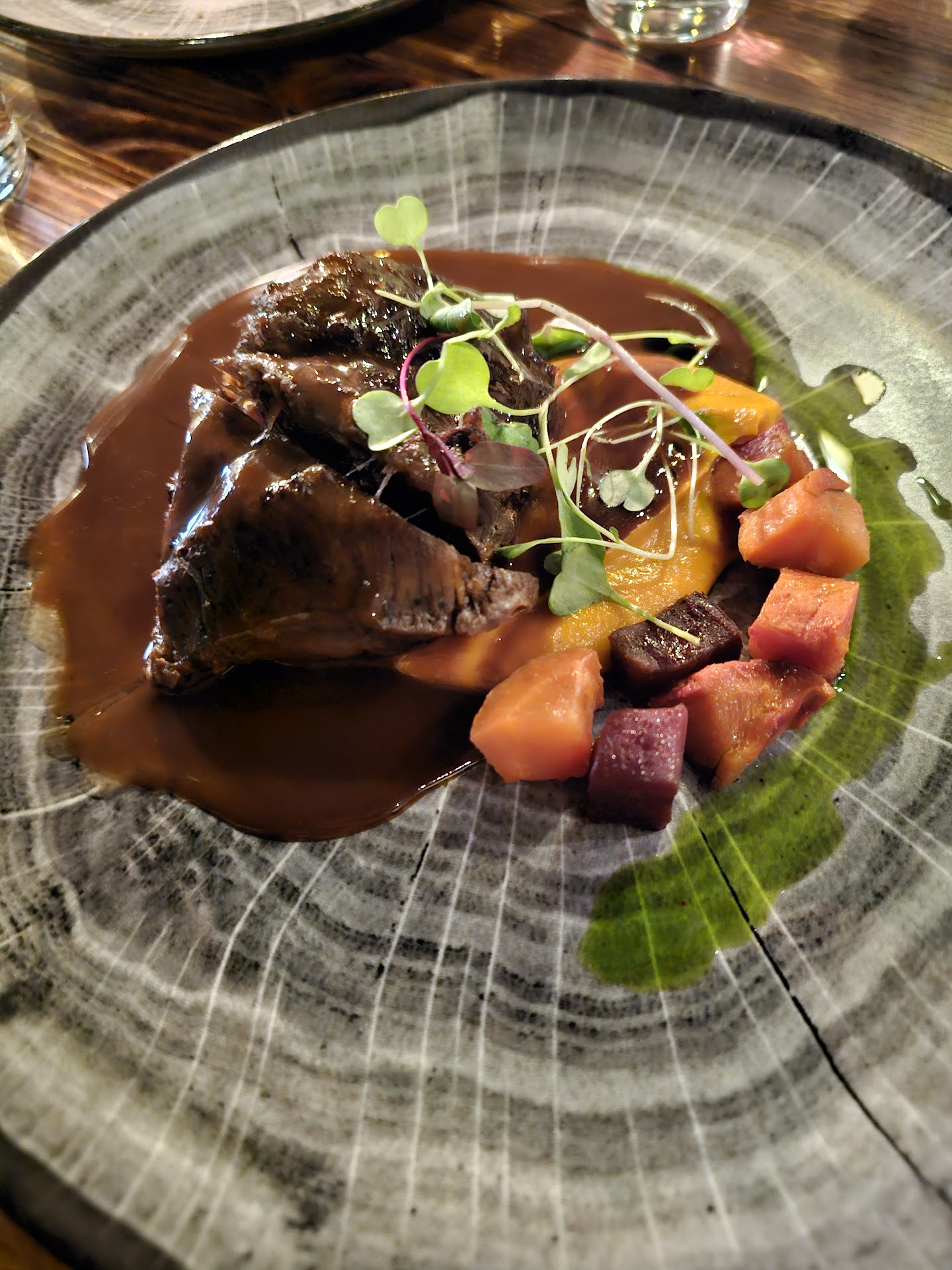 Read moreGood for location and alternatives as Finland is challenging on the price point and Rovaniemi is touristy as inherently to the marketing of Santa Town. Went here with a tour that included the lunch special of €30, which is buffet for starter and desert and choice of main a la carte. The beef cheeks were supersoft and tender, the starter from buffet are ok-ish. Long line forms for large groups entering at once (primetime 12:00), desert is cake, cookies and cheese. Drinks not included but water, coffee and tear are included as country standard and much appreciated that it's not nickled and dimed here. Coke is reasonably priced (€4/0.5L). Atmosphere is "cozy" unless you're unlucky placet to the buffet-queue. Service doesn't have a hard job given that's mainly buffet, but what's done is solid, friendly and not short of a smile and some smalltalk. Recommended, but doesn't knock you off your...