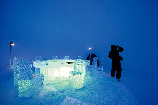 This is an experience unlike any other I've had: the entire restaurant (tables, bars) is made of ice and snow. You need to dress warmly, though they do offer thick wool blankets if you need an extra layer. You need to pre-order a set menu. The food is ok, but that's not what you come here for. The restaurant is quite large (seating capacity 270), and is beautifully decorated....