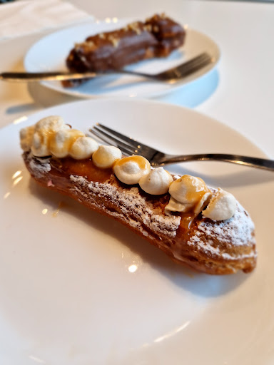 Cosy, quite and small patisserie. And apparently with big focus to eclair as they had many many variants. First, as a person obsessed with eclairs, I gotta say right away that anything that doesn’t have creme-patissiere inside is not eclair. So sorry but this had some other cream inside. That said, this is still a good pastry that I can come and eat time to time and especially with a price of only 4 euros this has excellent price-quality. But it won’t ever replace real eclair for me. Another really good thing about this place is that they offer pretty good coffee for only 2.5 eur. Not juhla mocca or any (for some reason) popular too acidic coffee variants out there. Simple but very good segafredo espresso 👍🏻 Overall decent, cosy, cheap, definitely worth occasional visits. I know noone ever reads here and take proper feedback, but I’ll try my luck: please use creme-patissiere… If it increases the price, maybe don’t put it on everything but just make a small variant called “proper eclair” or something 😀 and put a price of 7 euros… Don’t mind the tone, I loved the place, will be coming back time to time and I...