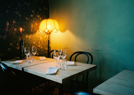 Tänne ei kävele kadulta sattumalla, vaan tänne lähdetään ihan asiakseen. Ravintola on sivussa ydinkeskustasta, mutta kuitenkin helposti saavutettavissa kävellen. Itse paikka sijaitsee kerrostalon takapihalla, kuin huoltorakennuksessa, aivan radan vieressä. Miljöö on siis hyvin erilainen, mutta viehättävä ja jännittävä sellaisenaan. Sisällä on pari huonetta ravintolan käytössä. Tunnelma on intiimi.