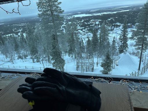 The panorama restaurant offers a breathtaking view of the snowy Finnish landscape â absolutely stunning! The large windows provide a perfect vantage point over the snow-covered forests and hills, making it an unforgettable experience, especially at sunset. The atmosphere is cozy, and the decor perfectly complements the winter surroundings.