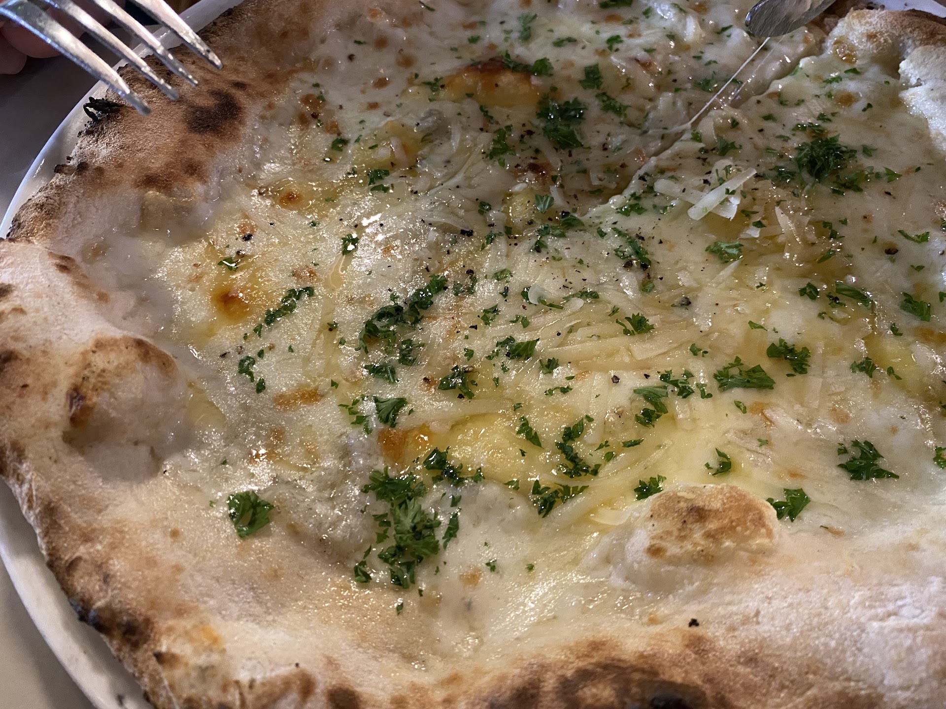 The menu is quite extensive, a lot of pizzas (with red sauce or without), pasta, and gelato. The white pizza with potatoes and truffle sauce was amazing. Dough and toppings are fresh although it was slightly burnt. Overall I’d give it a 4-4.5. Definitely...