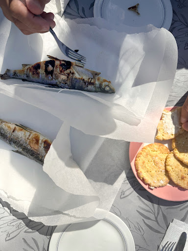 Fresh white fish (done on the fire there inside the house), served with salad (you can choose different types of salad combinations, it’s going to be served in a plastic box), a dressing, and some potato bread with butter. The fish was a bit too salty and it was lacking a bit more of that chard grilled from the skin, otherwise it was nice and juicy inside. It’s the second time we eat there, hence the comparison with the first time, when the fish had a bit more grilled flavor on the skin. Also, don’t expect big portions. The fish are medium to small size, so if you are hungry you can eat two of them. We were the only one there, it’s a nice charming old wooden barn, with character, but it’s lacking a bit of the...