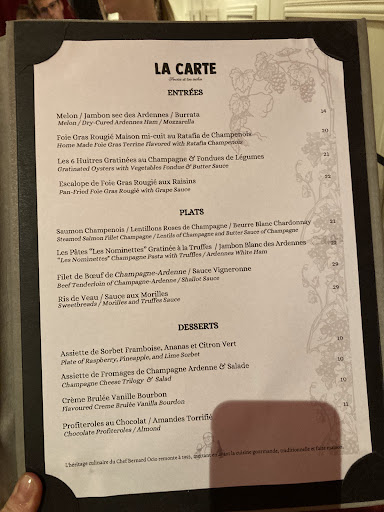 Read moreFirst of all the team at La Cave are truly professional and have a great attitude. Even the chef whom we were looking at in the kitchen gave a smile and acknowledgement to us. The food order was taken sincerely and the served professionally as well. We were even served water when he saw we needed it but didn’t ask for it, a really nice and generous gesture. Now on to the food, we had escargots and oysters for starters and they were really delicious. I can’t really describe the recipe for the escargots but it was with pork and fats and super well cooked full of flavour. The oysters was baked with cream and cheese and were really yummy. Didn’t had enough stomach to try the foie gras but i’m sure it would have been really good. The mains we selected were Beef filet and Cod fish with squid ink risotto. Beef was cooked to perfection (saignant) and really juicy. Cod was fresh and the risotto and the sauce that came with it was extremely delicious. Overall a 5 star experience and who recommend this place to anyone who...