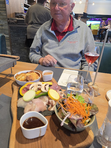 We went to Epernay for three days and stayed near La Marotte. Since the restaurant was nearby, they were open on Sunday and the reviews were ok, we decided to go. That visit would have been 5 stars. Nice staff who took the trouble to understand us, good recommendations on food, (foie as starter and cheese fondue were great) and an overall very nice experience. We decided to return the day after. We were seated at another table which was not in the same station of the very nice English speaking waitress who attended us before (even though she was there).This time I went for bavette which I ordered "a point" which was beyond well done. My partner had a kind of mixed grill on a hot stone which she had to grill herself. They put raw chicken over the raw beef (never a good idea) and the stone wasn't that hot so it took forever and then the stone was cold. After two attempts I asked the nice English speaking waitress if it could be grilled in the kitchen but by then our appetite was gone. Since my wife prefers sweet champagne we ordered a glass demi-sec champagne which was more dry than some of the bruts we tasted as well so we left that after one little sip. They serve great Ratafia however. Second experience was 1,5...
