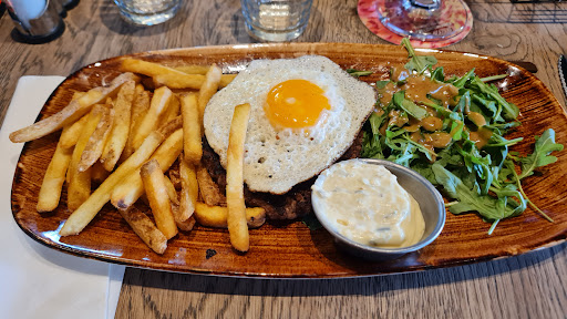 Avons pu tester ce restaurant, un midi en semaine. Table réservée au préalable, sur le net. Bon accueil, plutôt "speed". Une petite table nous a été proposée après dissociation de plusieurs. L'espacement (petit) produit a servi au service de tables situées à proximité. Un peu d'attente avant la prise de commande d'un menu à 15.90€ comprenant plat (choix restreint, soit flam du moment soit steak à cheval) - dessert (café dit douceur : expresso avec 3 petits desserts) - 1 boisson (relativement varié : bière, jus de fruit Granini, eau..). Beaucoup d'attente avant d'être servi. J'ai pu tester le steak à cheval : bonne qualité à mon sens, steak haché plutôt fin, manque de garniture (les frites maisons je pense, étaient aussi trop cuites) ; cela accompagné de salade. Une sauce tartare choisie. Madame avait choisi la flam du moment (voir photo) qui devait contenir aussi de la salade (manquant). Bien gras avec du saucisson et fromage, mais cela était bon. J'ai testé la bière artisanale IPA 25 cl : bien bonne. Madame a pris un jus de fraise Granini. Pour café / dessert, en l'occurrence le café douceur : bon café expresso et dessert bien copieux et bon. Atmosphère relativement bruyante mais on s'y attendait. Fabrique de bière à proximité de la salle de restauration. Grand choix de bières (artisanales) à prix très corrects. Il nous a fallu 1H30 pour manger ce qui est réellement excessif pour un tel menu. Il manque visiblement du personnel en salle (ou ailleurs ?). Les serveurs ne perdent pas de temps... Faisant partie du club des 3 brasseurs (à créer sur internet), je suis reparti avec une bouteille de bière artisanale 75 cl, bien aromatisée. Nous avons également récupéré des points sur notre "carte", ce qui permet d'avoir par exemple un café offert la prochaine fois. C'est une bonne expérience. On y retournera. Je regrette toutefois l'attente avant d'être servi. Heureusement que nous avions du temps devant nous car autrement, nous n'aurions pas pu manger (comme certains de ce que nous avons pu entendre en salle...). De gros efforts à faire à ce niveau là. A revoir aussi, le peu de garniture dans le plat. J'aurais mis 3.5 étoiles mais......