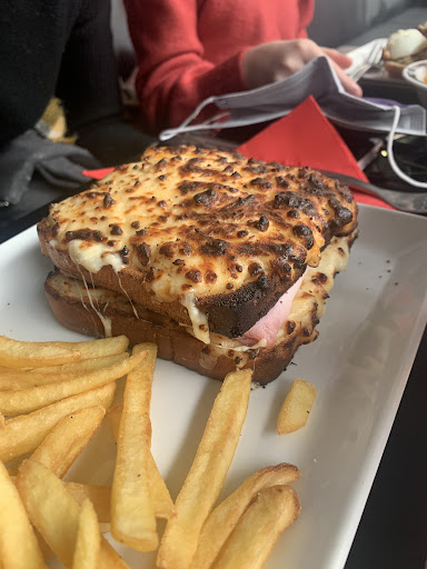Nous avons commandés ce jour là une copieuse salade , une croque gratiné à souhait , un sandwich avec un pain merveilleux et une pizza qui à que Grace à sa pâte et sa cuisson me ravir .