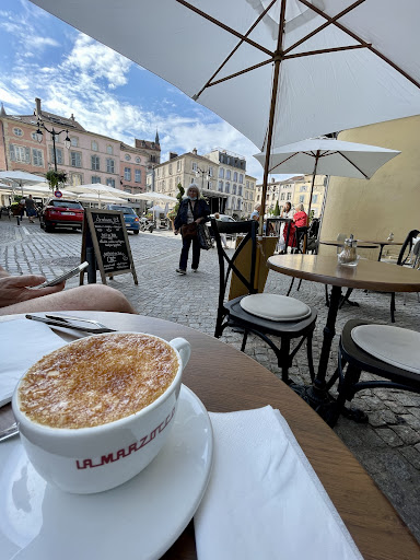 Read moreCafé situé à l'emplacement phare qu'est la place des Vosges au centre-ville d'Epinal, avec une terrasse parfaitement placée pour prendre le soleil de bon matin. L'établissement propose un choix de boissons varié, avec un excellent café mais aussi des sirops ou du thé (Chaï latte sur la photo jointe) pour ne laisser personne sur le banc de touche. Mention particulière aux patisseries maison ainsi qu'au repas du midi, un menu unique croque-monsieur + soupe du moment !