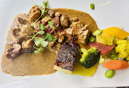 I was in a party of 5 people. I liked my goat cheese salad, gnocchi, and tiramisu (cool twist on the presentation - see photo), but all others were a tad disappointed with their meal. It might had had to do with the service. The typical snooty French attitude was on full display, helped by the fact that the whisky i wanted from the menu was not available, a wine that my friend wanted was not on the menu... and it felt like it was our fault for asking for those. Cute place though... and great restaurant name! "La Romance", "L'Amour"...love it. But perhaps as well "L'Arrogance" tonight as well.