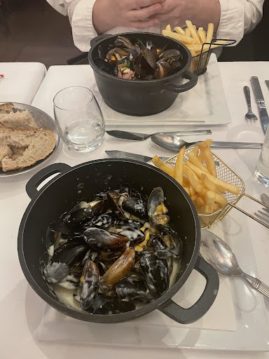 Diner avec mon épouse qui désirait manger des moules... Nous avions réservé au préalable. Bon accueil par le personnel. Ambiance bien calme, peu de clients présents le soir là, vers 19H30 (peut être aussi du fait de départ en vacances ?). Les tables sont bien espacées entre elles, ce qui est un bon point , à l'instar d'autres établissements similaires où les tables sont collées les unes aux autres. Les locaux sont propres, ordonnés. La commande a été prise rapidement, le service a suivi. Amuse bouche servis à l'apéro, ce qui nous a mis en appétit. Commande de moules frites "à volonté" au tarif de 22 euros. Plusieurs sauces au choix, nous avions choisi roquefort puis crème. 2 cocottes nous ont été servies, à chacun, ce qui a été largement suffisant. Plus de place pour le dessert.... Bonne qualité des produits ; personnellement, j'ai trouvé que les moules étaient un peu petites, mais toutefois bonnes, comme les sauces. Chaque cocotte servie avec un petit panier de frites. Boissons à prix très corrects. Sanitaires très propres. Possibilité de payer en chèques vacances classique (connect serait aussi très bien). On...