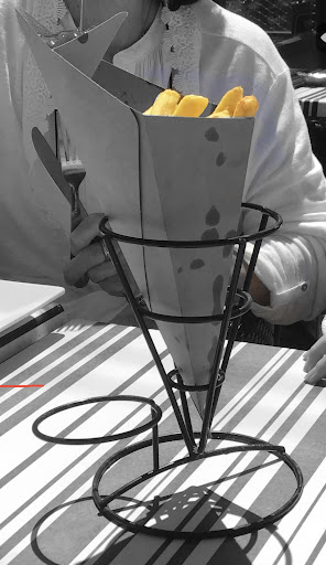 The positive: Being able to eat outside while looking at the Moselle River, the kayaks going down, or simply look at the people passing by is enough dove me for the 4 stars — especially after a confinement! The inside was cute. The table were made of carousel stuff like a teacup or wooden horses. Awesome for kids. Food was ok for us. We had fries, crepes, and chicken. It is a quick snack place so don’t except perfect crepes. For that you need to pick a “crêperie”. The fries were very good — crispy and big.