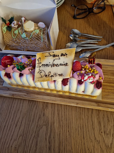 Je m'attendais à avoir un truc plus beau le jour J. Hélas, la décoration est très minime. En plus, la bougie (à 1€) n'est même pas été fourni ! Puis, quand j'ai récupéré le gâteau, ils ont voulu dire que le prix était en effet 4,5€ la part! Le gâteau est très moelleux, on dirait une mousse aux fruits rouges.