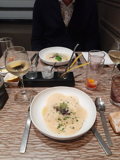 Toujours curieuse de découvrir de nouveaux endroits, je dois dire que je ne me suis jamais sentie aussi gênée et mal à l'aise dans un restaurant.. Aucune considération de la part du serveur qui ne prêtait attention qu'à certains clients. Nous avons dû attendre un bon 25 min avant de recevoir la carte, alors que d'autres tables arrivées après nous, l'avaient déjà elles reçue. Lorsqu'enfin celle-ci est arrivée, nous nous attendions à quelques suggestions pour nous aider dans notre choix (d'autant plus que les plats ne sont pas nombreux), mais la prise de commande s'est faite de la manière la plus froide et impersonnelle possible. Lorsque les plats et les entre-deux sont arrivés, c'est sans un mot : pas de description de ce qu'on mangeait, pas de "bonne dégustation" ; il a fallu qu'on demande pour avoir une reponse précipitée sans aucune considération.. Ce qui était d'autant plus déconcertant c'était de voir que le serveur avait un comportement tout autre avec certaines tables (description précise des plats, formules de politesse, cartes données immédiatement,...), à la limite du "j'en fais trop". Pour un restaurant de ce "standing", l'expérience client est complétement à revoir. Au delà de la déception générale, c'est surtout la mise à l'écart qui restera le plus marquant. Pour la petite anecdote, jusqu'au bout, l'expérience a été catastrophique, sans même nous demander si nous avions apprécié notre repas. Aujourd'hui, si j'y reponds, à 100€ l'addition à deux, je dirais des plats certes corrects mais peu mieux faire (rien d'exceptionnel, sans plus) pour un restaurant du guide Michelin et quantité à revoir... J'espère que mon commentaire sera vu comme constructif, et surtout l'expérience client à inscrire dans les points...