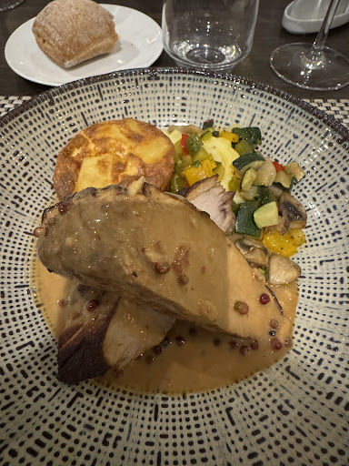 Read moreSalle de restaurant très sympa, belle carte, présentation des assiettes très jolie, j’ai pris un filet mignon de porc sauce moutarde et gratin dauphinois mais j’avoue avoir été déçue, viande très sèche et vraiment difficile à couper avec le couteau pour le coup non adapté… j’ai goûté les deux morceaux au cas où mais c’était pareil, j’ai donc mangé tout le reste et laissé toute ma viande. Mon conjoint a prit blanquette de veau apparemment très bonne mais viande un peu grasse. Nous avons pris deux desserts moi un crumble poire caramel beurre salé et lui un tiramisu, rien à dire les desserts étaient délicieux (j’en ai d’ailleurs oublié la photo tellement ça donnait envie j’ai sauté dessus haha). Ce que je trouve dommage c’est qu’avec le fait que je n’ai pas du tout mangé ma viande nous n’avons pas eu de geste, que ce soit offrir un des deux desserts, ou un café ou un digestif peu importe, au moins par principe mais rien a été fait, vraiment dommage… Je recommande quand même car peut être que je n’ai pas eu de chance avec ma viande, le reste...