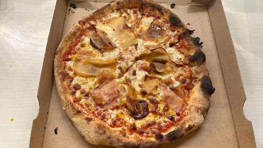 Première commande chez eux, livrée via Uber Eats. Je suis mitigé. Les photos des pizzas des clients ne ressemblent pas à celle que j’ai reçu comme on peut le voir. Je pense qu’elle a cuit trop longtemps, les bords sont brûlés, très secs et difficile à couper. Le jambon de poulet était lui aussi très sec. C’est dommage car une fois enlevé tout ce qui est trop cuit (soit environ un tiers de la pizza), le reste a très bon goût. Je ne doute pas des avis des clients mais il semble que moi, je n’ai pas eu de chance...