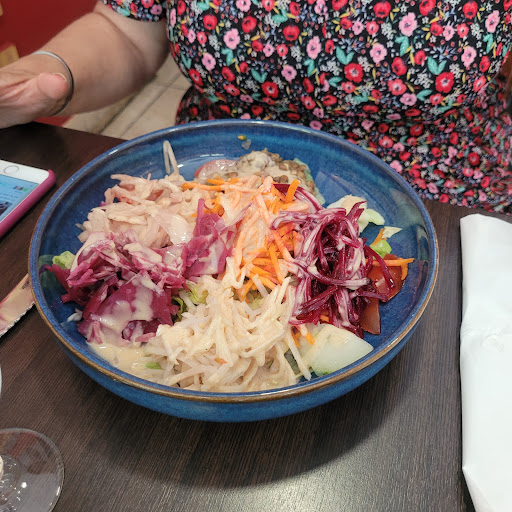 Read moreJ'avais un mauvais apriori au début. En effet, on est arrivé à deux, on nous a assis sur une table qui était séparée de part et d'autre d'une autre table, dont une allait nous forcer de bouger pour les laisser sortir quand ils auront fini, le lieu était très très bruyant, et pour couronner le tout, on a attendu au moins 15minutes avant d'avoir les menus (mais c'est clair qu'on nous avait un peu oublié, vu que le couple juste après les as eu directement), autant dire que mon avis était dans le rouge à ce moment là. Et pour ne pas déroger à la règle, après avoir commandé nos plats, nous avons attendu plus de 30m pour recevoir l'entrée... là c'était vraiment inquiétant, enchainer un tel niveau de mauvais point, ça ne présageait rien de bon pour le repas. Et bien j'avais tout faux ! La salade enfin arrivée, c'était une explosion en bouche donnée par la sauce, autant dire que ça fait partie des meilleurs salades que je n'ai jamais mangé ! Et garni de chez garni, à vrai dire après l'avoir mangé je n'avais déjà plus faim ahah, et j'étais vraiment super content du gout qui a effacé tous les points négatif précédent. Puis arrive la pizza (dont le temps d'attente n'a pas été aussi long), et là encore une fois bingo, excellent, gout intense et maitrisé, et ayant piquer une pâte dans l’assiette du voisin je peux dire qu'elles sont aussi excellentes ! Malheureusement je n'ai pas pu finir la moitié de la pizza, et je n'avais vraiment plus de place pour le tiramisu au dessert, et c'est là que pour la première fois, on m'a proposé d'emporter les restes, je connaissais le système mais aucun restaurant ne me l'avais proposé, et c'est donc très content que j'ai pu ramener chez moi ma pizza et mon tiramisu !