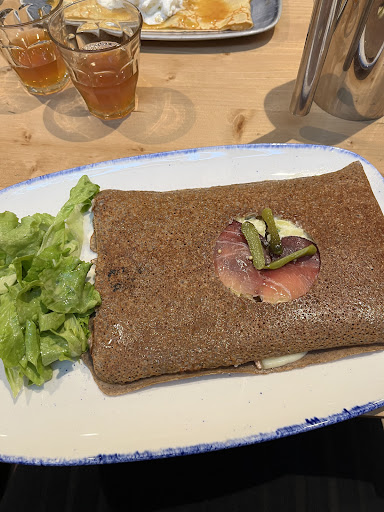 Read moreNous avons prévenu que nous n'avions qu'une heure pour manger or cela a été très long plus d'1h30. Ne prenez pas de crêpes avec Pommes de Terre car celles ci n'ont aucun gout à par la PDT réchauffé et sans assaisonnement. Et niveau quantité, cela m'a beaucoup étonné car très petite. Les crêpes sucrés signature donc entre 8 et 9.50€ ne sont même pas garnis/fourrés mais juste parsemés de condiments. Au niveau du gout c'était très fade. Pour couronner le tout, j'ai souhaité payer mon menu à 22.90 (23 € si j’arrondis), je donne 53 euros pour arranger le serveur et me refuse l'espèce en me disant qu'il n'a pas de monnaie en plein service. J'insiste sur le fait que j'ai donné presque l'appoint et qu'il me doit 30 € tout rond. Il se perds dans ses calculs en me disant qu'il n'a pas 4 € et m'oblige à payer en commun avec mon amie. Avec insistance, bizarrement les 30 € apparaissent. En résumé, perte de temps et obligation d'insistance pour se faire servir dans les délais et instance pour...