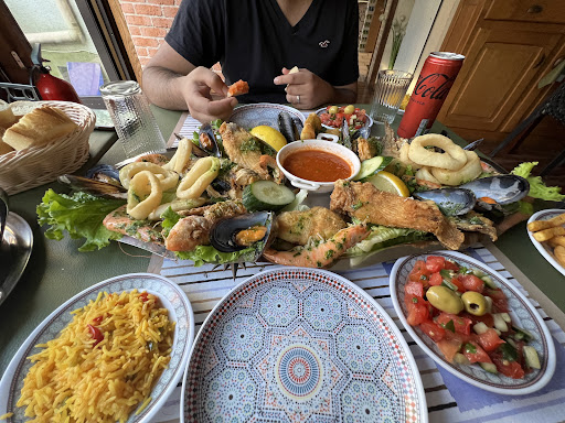 La devanture est jolie et nous donne vraiment l'impression d'aller dans un restaurant très sympathique et chic. Cependant, une fois à table c'est la désillusion, on est servi dans de petites assiettes en plastique, du jamais vu dans un restaurant, même des snacks daignent nous servir dans des assiettes en verre ! Pas de couteau sur les tables, que des fourchettes. Du gâchis ! Il faut savoir que l'on a pris notre réservation par téléphone puis une fois arrivés, le serveur nous a dit que l'on ne devait pas trop s'attarder car un groupe qui avait reservé, allait arriver (nous étions pourtant 4 adultes et 4 enfants). Ce qui nous a refroidi. Si le restau affichait plein pourquoi accepter notre réservation ?! Au final le groupe en question n'est pas arrivé et on nous a juste mis très mal à l'aise d'entrée, pour rien en nous donnant l'impression que nous étions juste des clients bouches-trous qui servaient à remplir des tables entre des groupes de clients. Ensuite concernant les plats, les poissons sont bons, les frites sont surgelées et le pain est de la baguette un peu sèche semblable à celle qui se vend dans les supermarchés et marchés. C'est tellement dommage que le voyage au Maroc s'arrête a la friture de poissons car la salade traditionnelle marocaine était un peu fade et les frites surgelées (peu intéressantes gustativement pour un restau! Encore une fois nous ne sommes pas dans un snack). Nous nous serions plus sentis au Maroc avec des frites maisons, un bon pain marocain et une salade mieux assaisonnée. Par ailleurs, à la fin de notre repas le serveur s'est permis de débarrasser la table au dessus de nous, nous mettant dans une certaine gêne. Alors qu'il aurait pu le faire sur le côté sans nous couvrir au dessus. Il a mis son doigt dans le verre de mon amie qui n'avait même pas fini de boire. Des maladresses qui témoignent d'un manque de professionnalisme dans la restauration. Le concept du restaurant est pourtant très bon mais malheureusement ces faux-pas font que nous ne pensons pas du tout y...
