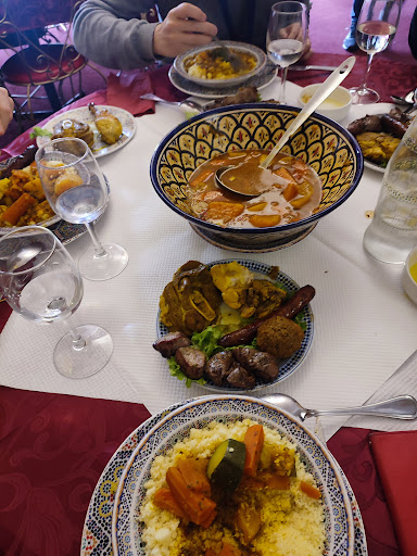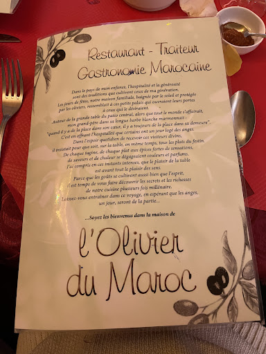 Première fois à l Olivier du Maroc, invitée dans le cadre d un anniversaire par des proches amis. Un samedi midi, le restaurant est quasiment complet, il vaut mieux réserver ou bien arriver de bonne heure. Ce qui peut être de bonne augure. Une grande table dressée pour une quinzaine de personnes nous attend dans un coin du restaurant. Les serveurs sont souriants, et s activement entre les tables. Nous commençons par un apéritif et nous commandons en même temps les plats. Choix entre couscous royal, brochettes, poulet, et tajines agneau aux poires, miel, amandes, c est assez alléchant. Sur la carte, je trouve couscous végétarien, du coup je passe commande. Mon plat arrive, une bonne dose de semoule, que je trouve pour ma part un peu trop salée, et ensuite plus rien. En fait, les légumes j ai du les prendre sur le plat du couscous commandé par les autres invités. Pour 14 euros 60, je trouve cher l assiette de semoule. Quand aux légumes pas trop de variétés, le bouillon pour moi manquait de saveur. Par contre, les tajines commandés, très copieux, semoule servie en forme de pyramide, très original. Le service impeccable, dommage qu il faille demander de la semoule et de la garniture à chaque fois. Ambiance joyeuse, la décoration un peu vieillotte, la vaisselle typique très jolie. La banquette confortable mais attention aux taches. Je vous recommande le boulaouane rosé, très bon vin, bien frais. Pour ceux qui n ont pas réussi à finir leur plat, une petite boîte offerte pour ramener les restes, ainsi que les bouteilles de vin non finies. C est à souligner, car beaucoup de restaurants ne le font pas. C'est une très délicate attention. Malheureusement, je n ai mis que 3 étoiles, mon couscous végétarien, rien d extraordinaire, et être obligée par 2 fois de réclamer semoule et légumes ça ne...