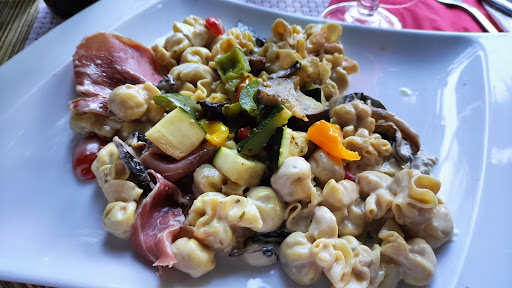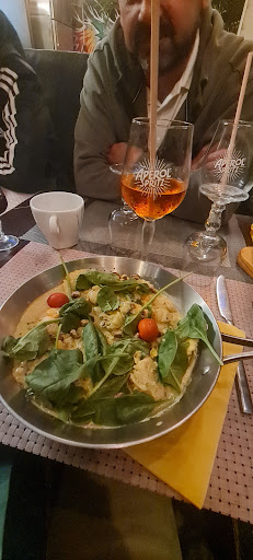 Restaurant très agréable la cuisine est très bonne. Pour ma part j'ai pris des ravilolis aux Saint-Jacques à la pistache c'était succulent et je n´evoque même pas la sauce qui etait une tuerie. Mon mari a testé le filet bœuf sauce aux cèpes qui visiblement était aussi très bon. Les autres personnes ont goûté les spaghettis bolo qui étaient apparemment un peu sèches et une autre pizza qui était de bonne qualité. Au niveau des desserts, baba au rhum testé...visiblement pas assez imbibés et le café gourmand ( mousse chocolat, panna cotta fruits rouges, tiramisu speculos nutella)...vraiment très bon. J´ai testé cette adresse en essayant de me fier qu´aux avis. Au niveau de la nourriture pas de déception. L´équipe est très sympathique et le cuisinier vient souvent nous voir ( jusqu´à la sortie) pour savoir si on avait besoin de quelque chose ou si c´était bon. A mon avis il faudrait faire de gros efforts sur la propreté. Je veux dire éviter de se tripoter le visage ou les cheveux et de mettre les mains dans un plat qui passe au four ( je parle des serveurs pas du cuisto) qui souate très sympathiques. Et peut-être vérifier l´état des toilettes et ne pas oublier également le sèche mains, le lavabo... La décoration intérieure n´est pas trop mon truc carrelage au sol, deco assez tchip mais l´extérieur a du cachet...manque un peu de soin mais elle a le mérite d´exister. La cuisine est excellente mais ne fait pas tout...il manque très peu d´efforts pour être une...