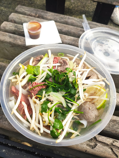 A emporté donc, le Pho fu vite froid, ce qui est extrêmement dommage dans le sens où la viande (d’excellente qualité) n’a pas de tout eu le temps de cuire. Tout le Pho avait l’air de qualité mais gâché par le fait qu’il fut dégusté tiède.. 14,5e trop cher pour un Pho de cette qualité. Le bouillon manquait de goût, peut être trop coupé à l’eau et pas assez d’ingrédients mijoté. C’est loin d’être le pire Pho, mais pour le prix, la qualité n’est pas justifié.