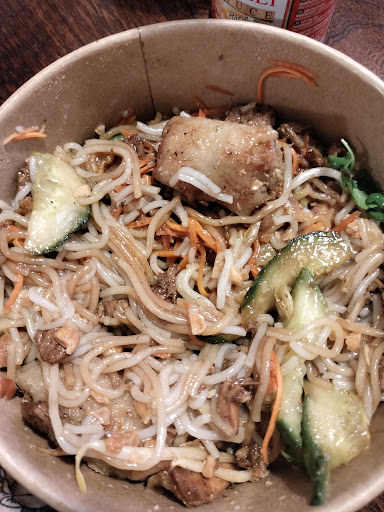 Le pire bobun de ma vie ! Et je vous assure j'en ai mangé des bobun ! A la commande il n'y a pas de bobun boeuf, pourtant après avoir pris celui au poulet il m'a été proposé le supplément boeuf que j'ai pris, à la réception de ma commande pas de boeuf je retourne les voir, cuisinier qui assure qu'il n'y avait pas de supplément boeuf. -_- et après vérification j'avais bien commandé ce que j'ai dit avoir commandé. Je n'ai même pas pu manger la moitié du plat ça baigner dans l'eau c'était très écoeurant visuellement et au goût c'était pas mieux. ( Dsl pour la photo je cherchais de la salade, et j'ai trouvé seulement 2 minuscule feuille de salade )