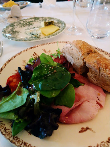En effet, malgré un cadre franchement prometteur et une carte plus qu’alléchante, nous sommes arrivés à 8 dans ce « restaurant » ce dimanche midi. Quelle ne fut pas notre première surprise, quand nous avons appris qu’il fallait payer avant ! Soit, si c’est ainsi nous nous y plions, mais nous aurions aimé que cela soit précisé au moment de la réservation. Ensuite, on nous annonce que c’est un buffet à volonté qu’ils osent qualifier de « brunch » à 47€ par personne. C’est la douche froide : il n’était précisé nulle part qu’il y avait un menu unique (du moins ce dimanche midi) nous nous attendions à pouvoir prendre à la carte. De plus, lors de la réservation, le prix du brunch était indiqué à 44€ par personne (tout de même! ) Je commence à croire qu’on nous prend pour des pigeons bien gras et très peu futés. Le serveur nous encaisse donc le montant vu sur internet avec je pense un goût amer dans la bouche au vu de la tête de 6 pieds de long qu’il tirait. Une serveuse nous accompagne à notre table. Au premier abord, nous trouvons les salles magnifiques. Et là, l’écroulement du rêve : on nous installe dans un coin en fond de salle, sur 2 tables rassemblées SANS NAPPE ! Dommage, nous aurions pu ne pas voir la peinture des tables qui s’écaillait toute seule, mais encore un loupé ici. Étonnée, je demande à la serveuse pourquoi nous n’avons pas de nappe, et en plaisantant je demande si nous sommes punis. Elle me répond, sans grande assurance, que c’est normal, que c’est le style. Pourquoi pas, mais surtout pourquoi ne pas nous avoir proposé la table juste à côté, dressée au même nombre de couverts, bien drappée ? Cela restera un mystère. Vous l’aurez compris, nous sommes vite redescendus en gamme comparativement au reste de la salle. Enfin, parlons du « brunch » qui n’en a que le nom. Effectivement, c’était plutôt bon, notamment la pizza, ce qui reste malgré tout très cher pour 2 morceaux de pizza, et il y avait du salé et du sucré. Mais malgré cela, la présence de 3 saladiers de piémontaise (je pense pour meubler), le serveur ne sachant pas nous dire quel beurre est salé, un autre ne sachant pas nous dire à quoi est la tourte présentée, et une assiette sale nous ont vite rendus dubitatifs. Ce fut un moment risible au plus haut point. Étant donné le prix payé, nous avons plutôt ri jaune qu’autre chose. Nous sommes obligés de couper le pain nous mêmes ! Je répète, n’y allez pas avec une tendinite, vous risqueriez de vous abîmer les tissus ! Attention également, les cocktails sans alcool ne sont pas compris dans le prix exhorbitant. Vous devrez rajouter. Les serveurs on ne les as pas beaucoup vus, pas très aimables, le repas pas très varié malgré le bon chocolat chaud. J’ai connu des petits déjeuners dans de grands hôtels bien meilleurs et bien moins chers avec bien plus de choix. Heureusement, mon mari était là pour réchauffer l’ambiance qui était morose limite glauque. Un lieu qui prétend avoir la classe n’a d’égal que les bons moments que l’on y passe et ne se mesure qu’avec les personnes qui y siègent. Enfin, les extérieurs sont sympa, nous nous sommes promenés dans le parc, ce qui nous a beaucoup plus enthousiasmé que le repas peu varié ainsi que notre expérience plus que douteuse. Pour terminer, je dirai qu’il faut déjà être un bon jambon pour manger là bas, mais il faut être un cochon encore plus gros pour souhaiter...