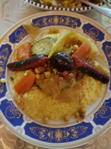 Jai ete avec mon epoux hier dans ce restaurant, mais alors pas quoi commencer ?! J ai tellement de chose a dire !!! On se sentaient tellement au Maroc dans ce magnifique restaurant ! Tres belle deco et musique de fond tres agreable et douce. Menu super bien presenté et bcp de choix de couscous et tajines !!