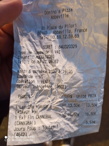 Read moreDécevant , plusieurs fois que je commande à ce domino's pizza la ce fut la dernière, on a du renvoyer 2 pizza l'une pour la taille mais ça c'etait à cause du site. L'autre parceq'un énorme trou etait au milieu..ensuite ils reviennent, ayant enlever les oignons surprise ils sont la et aucune sauce bbq. Donc j'appelle et on me dit "il a beaucoup de retour aujourd'hui je vais voir" alors que l'erreur vient d'eux..puis le responsable je pense me dit "le cuisiner dit qu'il en avait mit sans faire expres et qu'il les a retires" de toute evidence mal retirer et dans tous les cas refaire la pizza l'oignon a beaucoup de gouts quand même..bref voilà retours du livreur pour la deuxieme fois vers 21h50 (on a passer commande pour 20h30) , j'ai manger ma pizza mais sur certaine part j'avais qlq surprise je pense m'etre prit les restes dans...