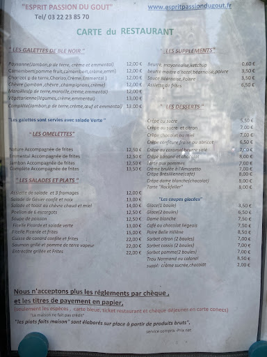Read moreCette crêperie bénéficie d'un emplacement privilégié, non loin du beffroi et de l'Abbatiale de Saint-Riquier, et offre l'opportunité de déjeuner sur une terrasse située à l'arrière, au calme. Les plats sont assez classiques et sont faits maison. Ils sont cependant un peu chers pour une quantité assez réduite, donc grosses faims s'abstenir. Pour une ville de Province, on pouvait s'attendre à plus roboratif... Faire payer 0,60 € le supplément (beurre, mayonnaise, ketchup) et 3,50 € la Sauce Béarnaise ou Poivre montre quand même un certain état d'esprit. La patronne, en revanche, n'est pas avare en commentaires et donne beaucoup d'explications sur l'élaboration de sa cuisine au moment de servir... L'impression d'ensemble reste finalement assez sympathique, grâce à la qualité correcte des plats et la quiétude de...
