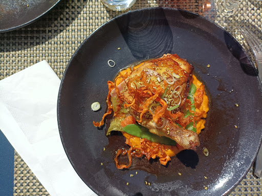 Read moreNous sommes allés dans ce restaurant, séduits par la carte du menu et la décoration sympathique... Ce fut une très grosse déception ... Au menu en entrée "velouté de potimarron, écrasé de châtaignes et oeuf confit...", l'assiette est ébréchée à 3 endroits, le velouté est correct mais froid. L'œuf confit est dur et collant, immangeable... Il y a quelque chose qui ressemble à des chips de légumes frits sur le dessus... Le goût de cette friture est douteux et prend le dessus sur l'aliment. Plat suivant annoncé au menu " filet de pintade roti, pétales de panais et ses petits légumes rôtis sauce miel et thym"... L'assiette arrive et c'est une énorme déception. D'abord visuelle car le filet est en fait un haut de cuisse et il n'y a rien qui ressemble à un pétale mais des légumes coupés grossièrement et pas de sauce... Puis une déception gustative car la pintade est fade et les légumes sont insipides. On dirait que ça a été rapidement plongé dans de l'eau claire... Aucun soupçon de thym ou miel... Je ne peux personnellement avaler aucun de ses légumes, pas assez cuits et sans goût...mon conjoint a la même déception que moi... Quand le serveur nous demande si ça s'est bien passé alors que nos assiettes n'ont pratiquement pas été touchées, nous lui avouons que c'est une grosse déception. Il nous répond que ce n'est pas grave en souriant... Il repart avec nos assiettes en cuisine et là nous entendons des rires ...oui apparemment, notre expérience les fait rire...nous décidons de partir... l'addition nous paraît, elle, bien salée face à une expérience au...