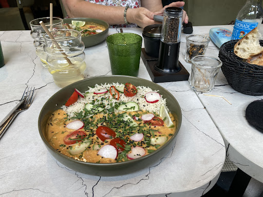 A great restaurant to enjoy a meal with friends and family in a pleasant and relaxed environment. Dietary requirements are well catered for with clear labels for gluten or lactose as well as vegetarian. The service was excellent, friendly and efficient plus my booking through Google worked and we were even able to dine earlier on a busy Saturday lunchtime. The food is not cheap but reasonably priced and made simpler with a small number of covers. Our Le (Thai red) Curry was tasty and available with shrimp or as vegetarian. Although there was a vegan symbol on the menu, I did not see this marked against any dishes. It would have been nice to enjoy a more traditional French meal but this seemed to be mainly beef or as vegetarian catch of the day which were a bit more expensive. The single toilet led to a short wait but service was rapid. Overall a great location to enjoy a meal while...