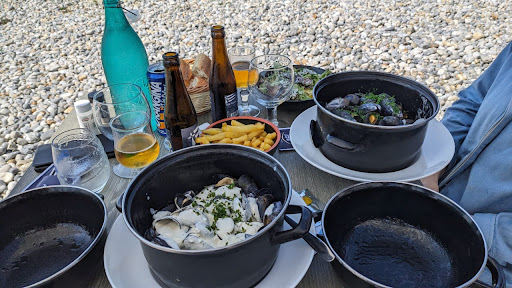 Read moreVenu début août,attiré comme beaucoup par l’emplacement et en particulier la terrasse directement située sur la plage . C’était complet alors on devait attendre le deuxième service. J’ai réussi à avoir une table de rêve tout au bout de la terrasse à gauche avec vue fantastique qui fait rêver littéralement. Mais voilà tout s’arrête là, j’ai du me lever pour qu’on prenne ma commande car on nous avait oublié ( pas les autres tables par contre).2 moules . Marinière et à la crème. Je commande donc avec des apéritifs . On m’apporte à 2min d’intervalle seulement. Pas le temps de relaxer un minimum. Ce jour là ,un mardi c’était très fréquenté mais il y avait apparement assez de personnel. Bref, moules trop petites ,frites pas assez chaudes et trop cuites, mayonnaise à 1 euro pas bonne sans prévenir le coût supplémentaire. Trop de crème sur les moules et manque de saveur. Les boissons sont posées assez brutalement par une jeune serveuse sans les placer correctement. Les verres ne sont pas séchés je dois les retourner pour enlever de l’eau au fond. Pas terrible du tout mais la vue aide énormément à passer un moment agréable. Pour finir je dois me lever une deuxième fois pour avoir l’addition.Le serveur ne nous regarde pas dans les yeux ( j’ai horreur de cela personnellement) . On quitte le restaurant en passant devant du personnel à l’intérieur,sans obtenir un au revoir sans merci. Même dans le jus,on doit saluer la clientèle,c’est le minimum du minimum. Évidemment c’est l’emplacement qui est le point fort . Mon expérience culinaire et le service n’étaient pas à la hauteur et plutôt décevante. Les restaurant fait du chiffre sans aucun doute mais si un plat de base comme des moules n’est pas satisfaisant alors je ne veux pas essayer autre chose car les prix sont quand...