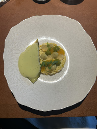 Read moreCritique – Restaurant Le Shore à Saint-Valéry-sur-Somme (19 octobre 2025) Nous avions hâte de découvrir le menu dégustation éphémère à sept plats du restaurant Le Shore. Dès l’arrivée, le charme opère : un cadre raffiné à la décoration épurée, un service attentionné et un accueil chaleureux. Tout semblait réuni pour une belle expérience culinaire. Malheureusement, l’enthousiasme s’est vite atténué. Le menu, initialement annoncé à 80 €(sans apéritif, sans vin,sans café), est finalement facturé 90 € au motif de l’inflation, sans information préalable. D’autres suppléments, comme quelques grains de caviar à 25 € (que nous n'avons pas pris) ou une simple carafe d’eau à 3 €, laissent un sentiment d’amertume. Aucun choix de cuisson n’est proposé, et les portions, bien que soignées et composées de produits locaux, restent modestes et sans véritable effet « wahou ». Le confort n’est pas non plus au rendez-vous : les sièges se révèlent peu agréables sur la durée d’un repas de trois heures, et la salle exiguë accueillait ce midi-là plusieurs grands chiens. L’un d’eux, (un berger allemand á poil long) installé juste à côté, s’est ébroué à deux reprises, envoyant quelques poils sur notre table — une situation assez limite dans un établissement de ce standing. Au final, Le Shore offre une cuisine de qualité mais à un tarif qui ne se justifie pas totalement. Une expérience mitigée, où la finesse de l’assiette ne parvient pas à compenser les maladresses du service et de l’organisation. Nous ne renouvellerons pas...