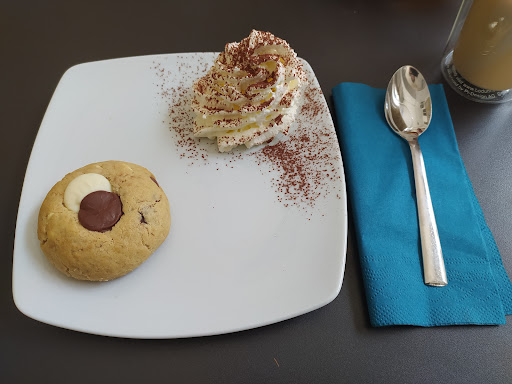 Read moreTrès bon café latte, bien frais et pas trop sucré. Bel endroit à l'intérieur, décoration soignée dans un style industriel, de même pour la terrasse. Seul problème quand on est sur la terrasse, la route adjacente avec parfois le passage de motos très bruyantes. J'ai goûté le cookie trois chocolats et je l'ai trouvé un peu farineux, mais la présentation dans l'assiette est jolie, avec une petite volute de crème chantilly. Service et accueil agréable. Petit plus écologique, les pailles sont en inox et pas en papier, c'est...