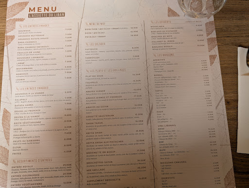 Read moreL’assiette du Liban est une table à retenir ! La salle est très agréablement décorée, chaleureuse, et, même pleine, le fond sonore reste agréable. L’accueil par le chef et le patron a été parfait : très poli, courtois, aimable, de bons conseils pour les détails de la carte. Petit bémol pour le jeune serveur qui a encore un peu d’expérience à acquérir en terme de positionnement et de technicité de base ! ( ne pas vider le reste d’une panière à pain dans la nouvelle notamment ! ) Pour la cuisine un vrai sans faute : amateurs de la cuisine libanaise, les goûts, l’assaisonnement et les cuissons étaient simplement parfaits ! Les assiettes sont très généreuses au point même de ne pas avoir pu se laisser tenter par leur carte de desserts « fait maison ». Une formule menu enfant, avec des assiettes plus petites pourrait être un petit + pour les plus jeunes gourmets. Vous pouvez réserver sans réfléchir nous...