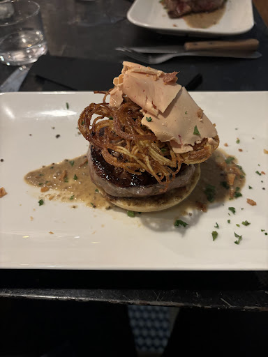 Read moreTout parfait ! Repas improvisé sur Agen mercredi midi avec famille de passage, 4 adultes et 2 ados, réservé une demie heure avant, placés en terrasse sous arcades, pas eu trop chaud malgré canicule dehors, déco et personnel sympa, bienveillant ; plancha pour apéro, tartare de boeuf au couteau, noisette d agneau, émincé ( 5 mm) de boeuf au pesto (l assiette plate normale recouverte), gnocchis avec filets de poulet panés ; saladiers de frites et salades servies à part, à redemander si grosse faim, pas eu besoin surplus ; en dessert pour certains par gourmandise, les autres plus faim, avec soupe de fraises et glace à l abricot, et profiteroles avec cannelés à la place des choux ; l ensemble des plats excellents et quantité suffisante., BiÚre et rosé premier prix bons..une bonne adresse à recommander et refaire ! ( Pas pris d autres photos, occupée à papoter...